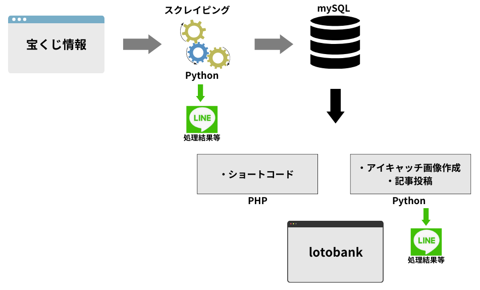 今まで習得したPHPとPythonの知識を使って、「lotobank」を作成しました。